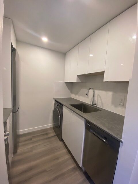 - Unit #102. This beautiful, renovated studio suite is a place to call home. It has one closet and a kitchen with lots of cabinet space. It glows with light and has high-end finishes, and warm colors. The kitchen has all new quartz countertops, stainless steel appliances, a Fridge, Stove, Dishwasher, Washer/Dryer Combo and vinyl flooring.